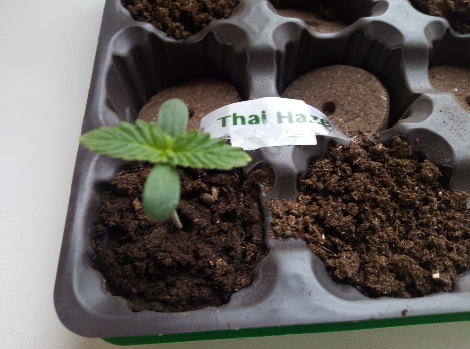 На фото рассада (5 дней) Семечки проклюнулись хвостиком 0,5см за 1день! На 2-й день из ватного диска переместил в почву. Взошли на 3й!!! Этот сорт мне известен по проживанию в Таиланде. Рекомендую тёплым вечером аккуратно устроиться в гамаке на веранде, предварительно приготовив ништяки. Аккуратно дунуть 1 раз и приготовиться... Вас обязательно навестит добрый дух Сиама)))